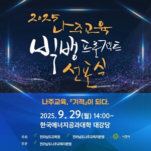 나주교육지원청, 「2025. 나주교육 빅뱅 프로젝트」 선포식 K-교육을 선도하는 나주교육, 지금 시작! 전라남도나주교육지원청(교육장 변정빈)은 오는 9월 29일(월) 14시, 한국에너지공과대학교 대강당에서 「2025 나주교육 빅뱅 프로젝트」 선포식을 개최한다. 이번 선포식은 2024년 「나주교육 비전 선포」에 이어, 나주교육 미래 10년을 위한 실행 계획을 나주교육공동체와 지역사회에 처음으로 공유하는 자리이다. 나주교육지원청과 나주시는 2차 공공기관 이전, 에너지 국가산단 조성, 공동주택 개발 등 교육수요 확대 요인에 따라 지속적인